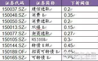 目前绝大部分股票型分级基金的下折阈值是0.25元,但下列基金的下折阈值有所不同,分别是: