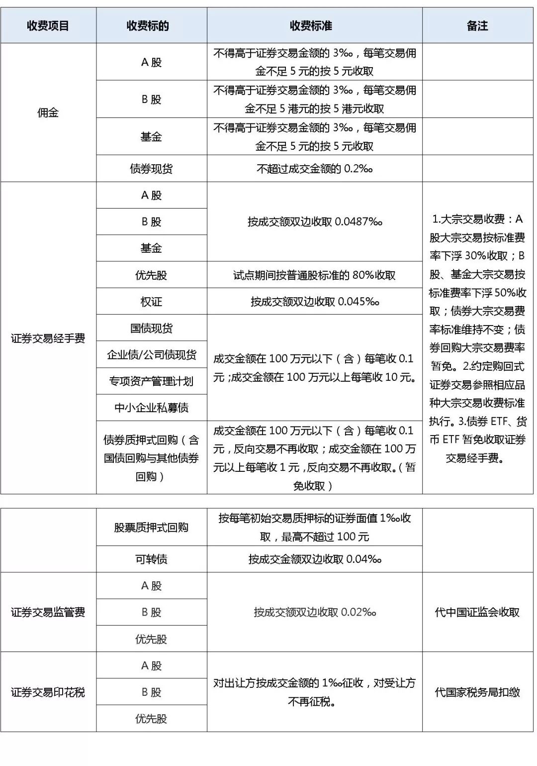 注:(1)佣金收费标准为收费上下限标准,具体收费标准各证券公司可在该范围内确定,投资者可与开户证券公司确认;